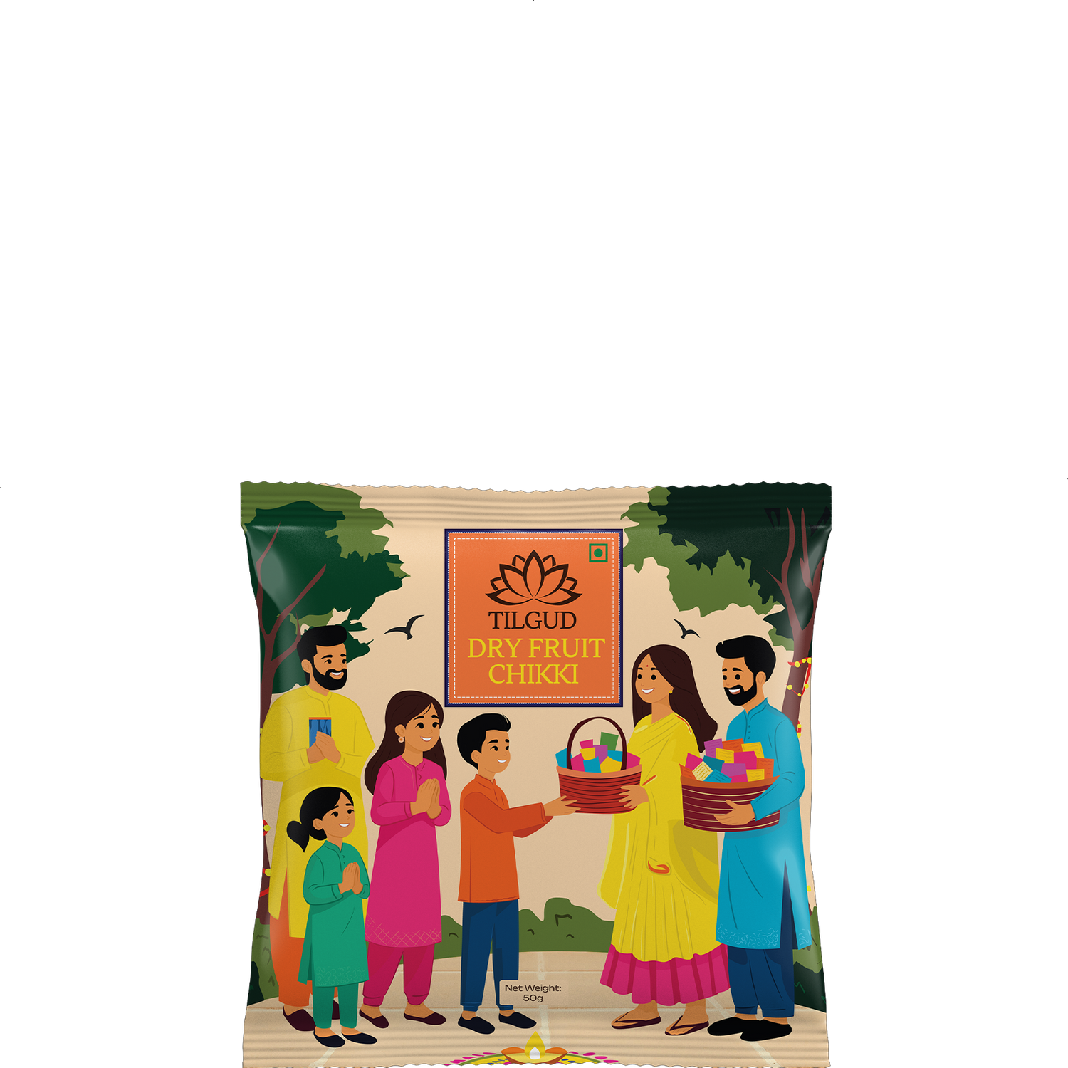Til chikki, eaten during Sankranti, provides warmth, energy, and boosts immunity in winter. Rich in sesame and jaggery, it aids digestion, strengthens bones, and nourishes the skin, while spreading sweetness.